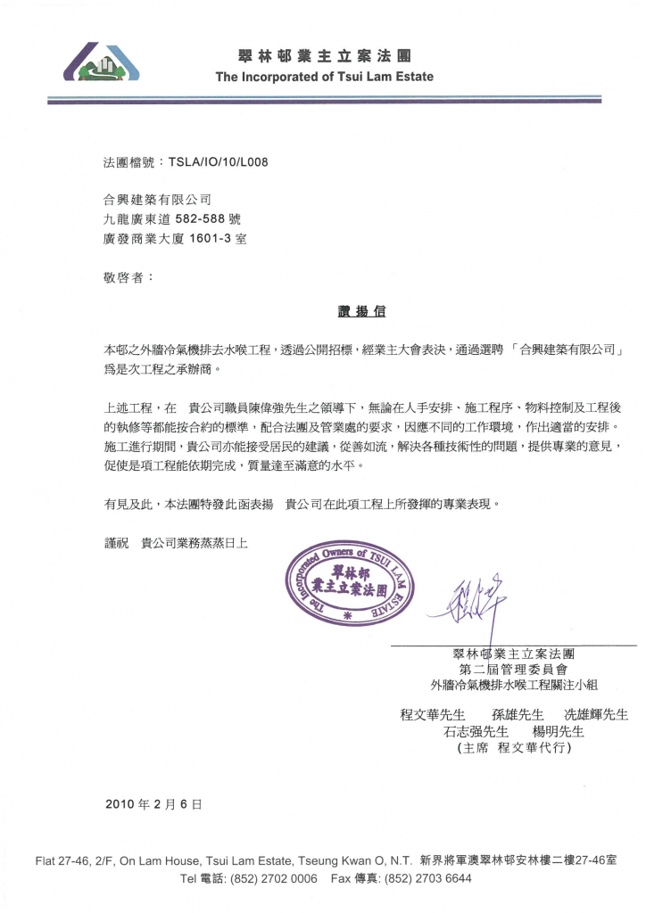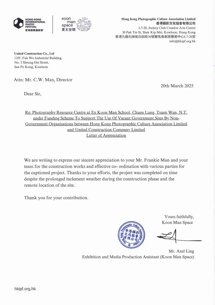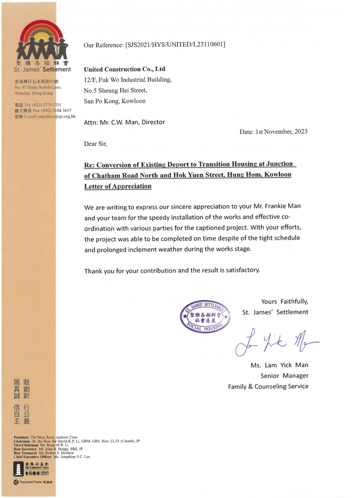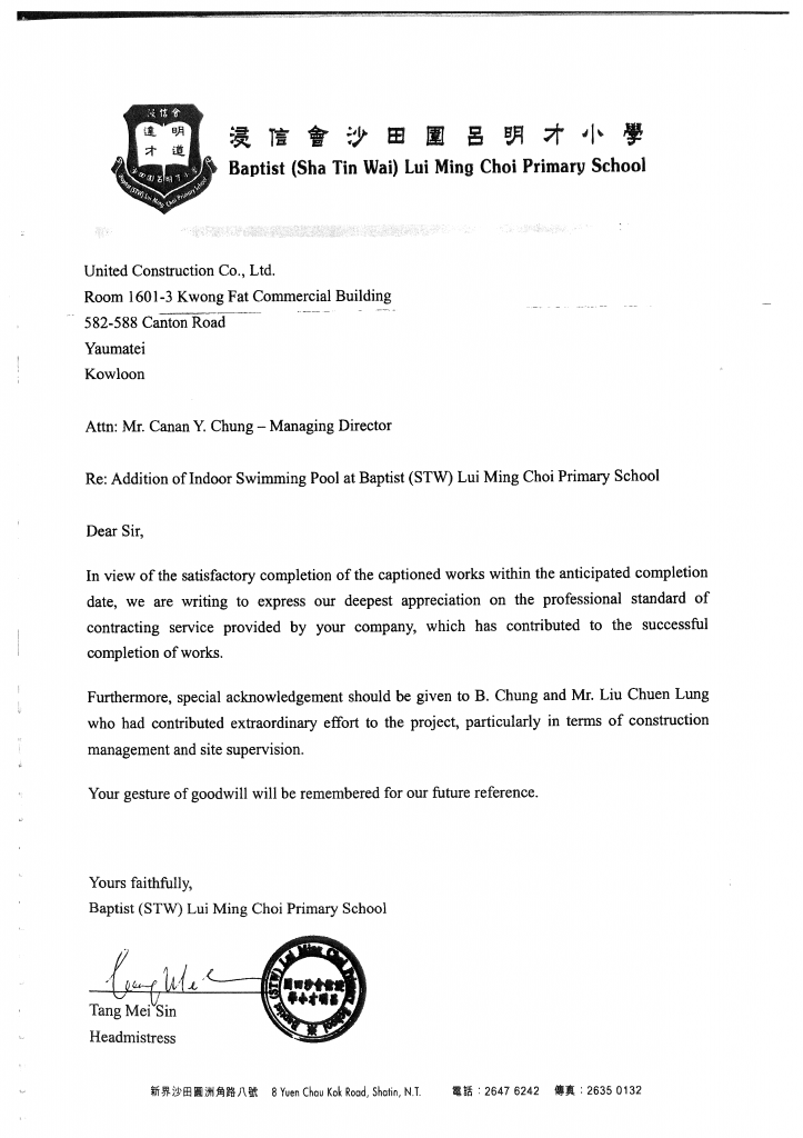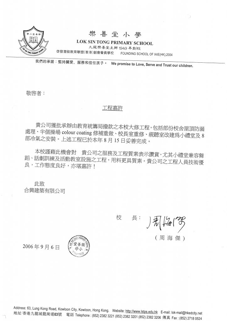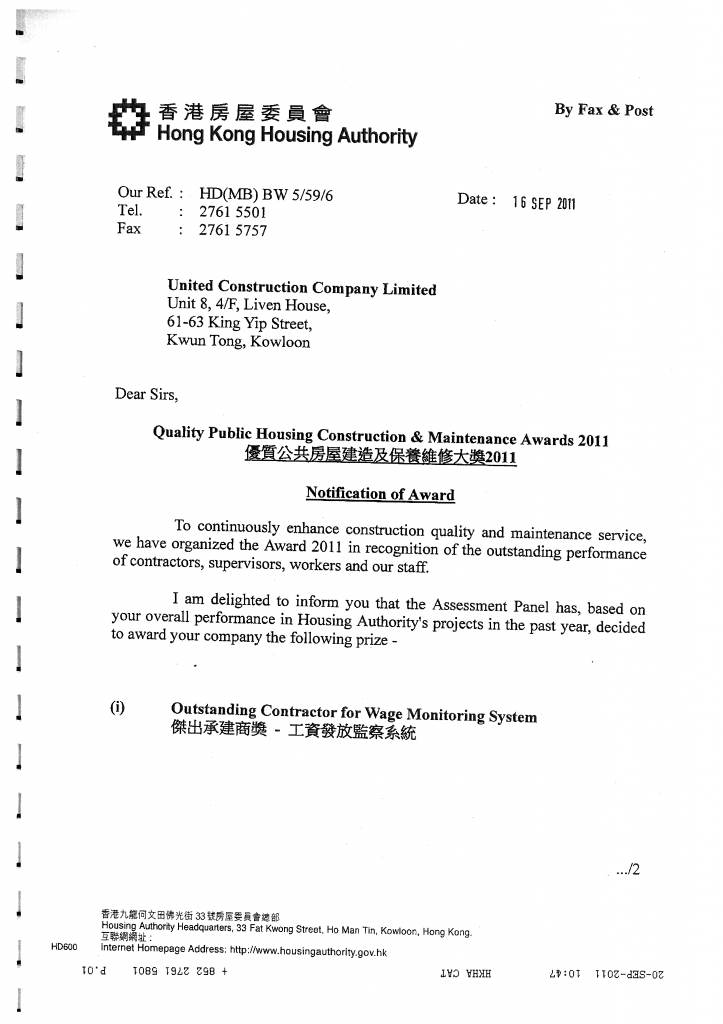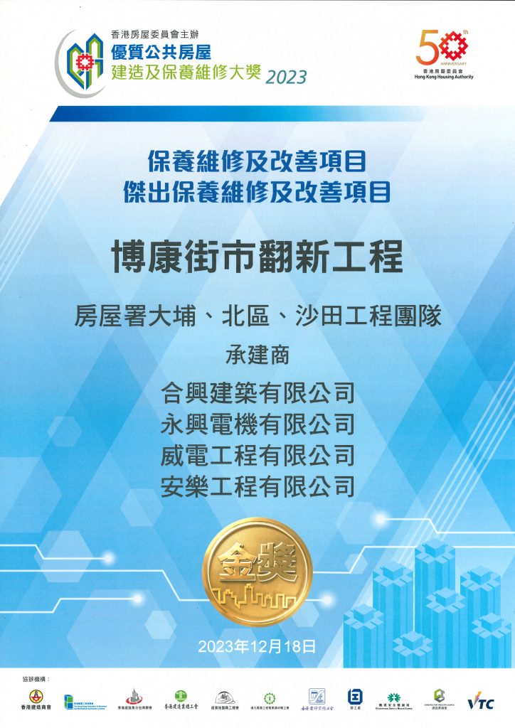 Awards 2025 – Photography Resource Centre at Ex Koon Man School 2023 – St. James’ Settlement 2023 – HKHA Award – Pok Hong Estate Market HKIS – Building Surveyor Awards 2023 HKIE – The Excellent Building Award 2023 Silver Medal (Stanley Municipal Services Building Public Toilet) – 2022 HK Best Public Toilet Election Gold Medal (Tsuen Wan Multi-storey Car Park Building Public Toilet) – 2020 HK Best Public Toilet Election 2018 – The Hong Kong Polytechnic University 2015 – Baptist (Sha Tin Wai) Lui Ming Choi Primary School 2013 – Pok Hong Estate 2011 – Tsz On Court 2011 – Outstanding Contractor for Wage Monitoring System 2010 – Tsui Lam Estate 2006 – Lok Sin Tong Primary School 2005 – Cognitio College